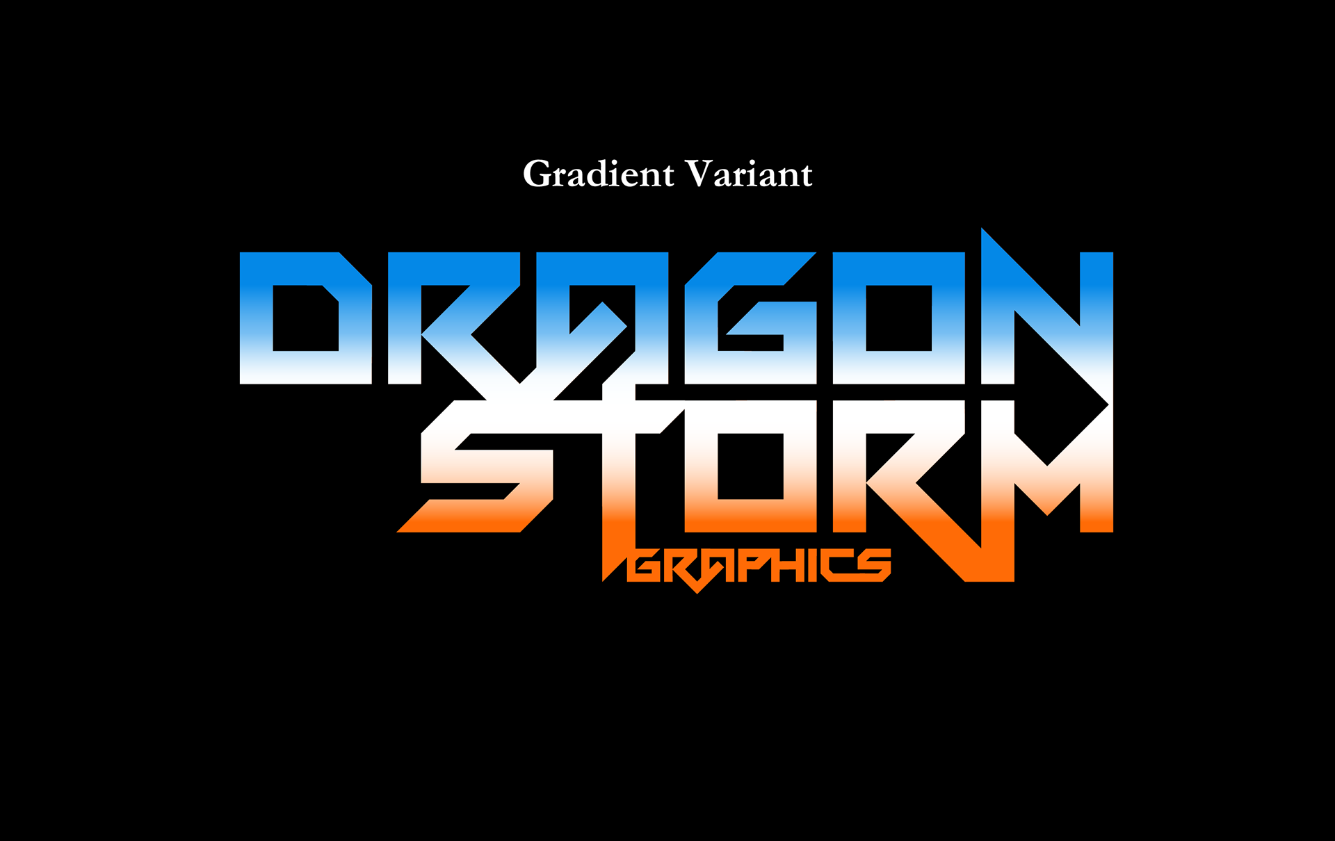 Electric blue and fiery orange dragons duel in a tornado storm of light. Bold type made of strong angles that merge together reinforce the concept of strength and divergence.